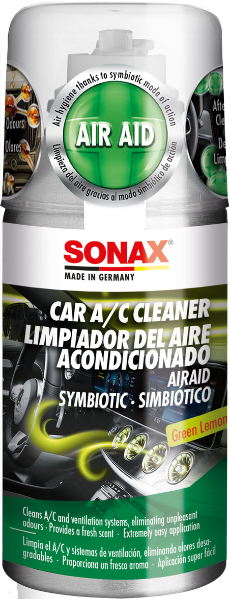 - SONAX Aircon Rens desinficerer hurtigt og let luftsystemet og fordamper via de mikrobakterielle aktive stoffer der er i produktet